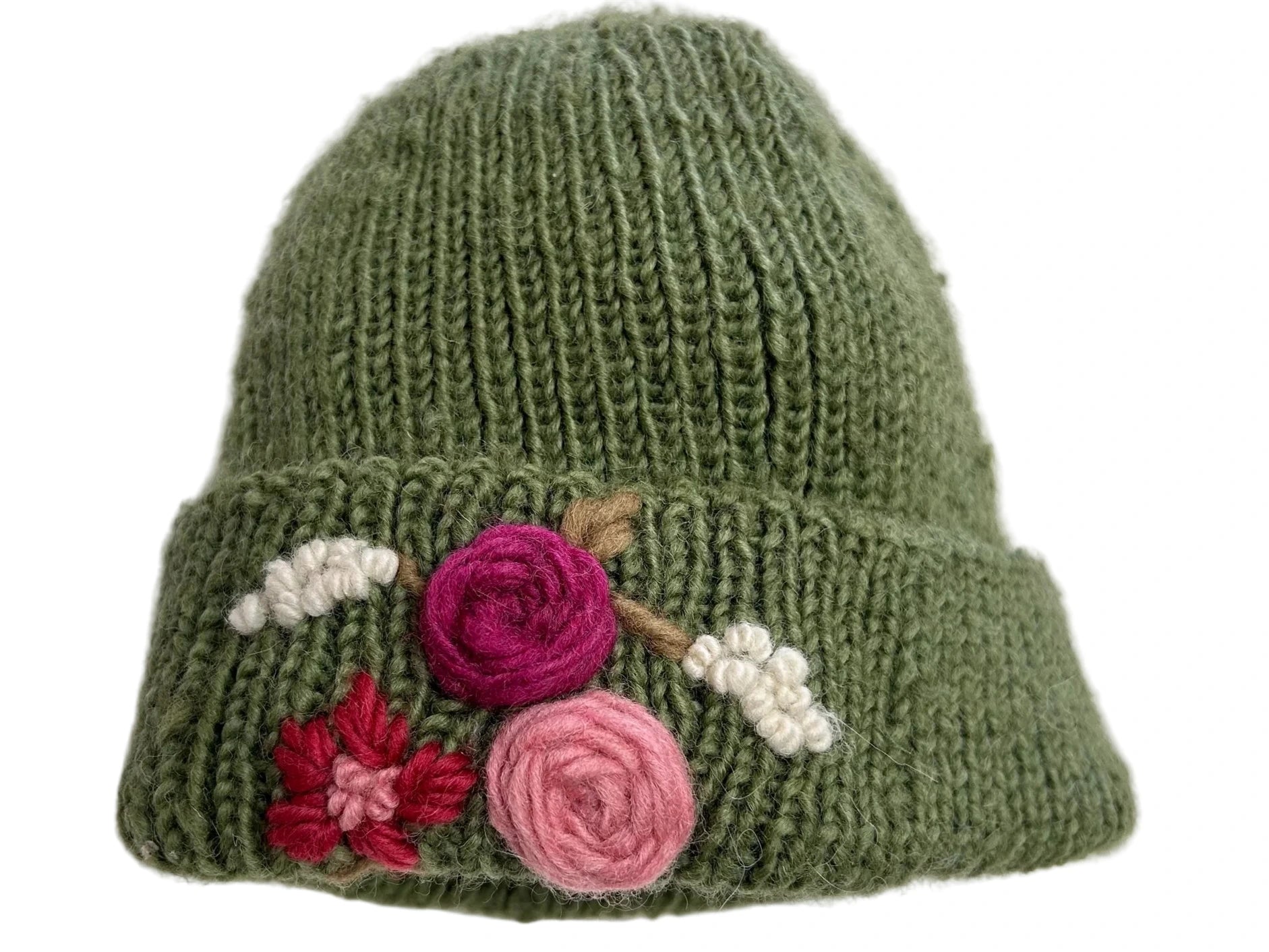 100%Ultra Soft Gillbox wool, hand embroidered Rib Hat- turn up brim, fully lined in fleece.