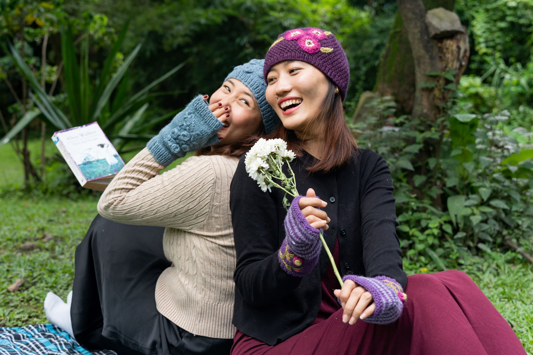 A classy moss stitch hat with a cluster of three hand embroidered flowers and gold bead details .